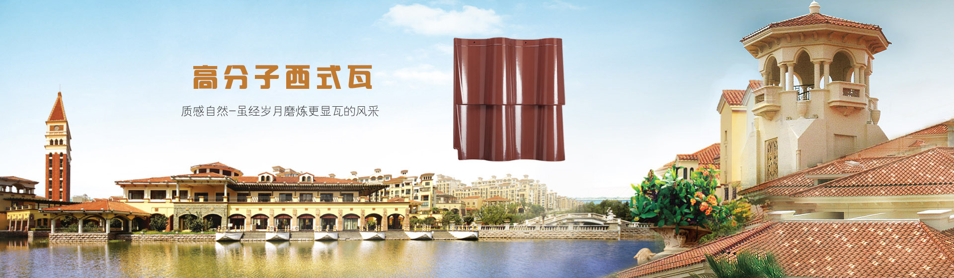 公司采用高分子材料高溫高壓模具成型的裝飾屋面瓦系列:仿古瓦、筒瓦、小青瓦、琉璃瓦、西式瓦等,集防水、隔熱、裝飾功能于一體。強度高、重量輕,安裝簡便快捷,不需要做防水層。耐候性好,使用壽命長、終身不漏水、不維修,徹底克服了傳統(tǒng)燒結(jié)瓦易松動、裂紋而滲漏的缺陷,是現(xiàn)代中高端建筑理想的用瓦選擇。
